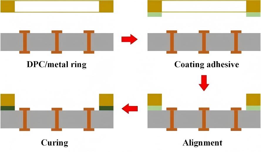 将金属或陶瓷环通过有机胶粘剂与高精度DPC基板在低温下粘接成型。该工艺简单、成本低,且不损伤DPC线路层,但有机胶耐热性、气密性较差,适用于对散热与密封要求不高的高精度器件封装。