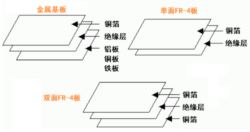 标准金属基板采用典型的三层夹层结构,自上而下依次为: